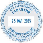 Диаметр поля: 50 мм, высота шрифта даты: 4 мм. Штемпельная подушка: синяя.