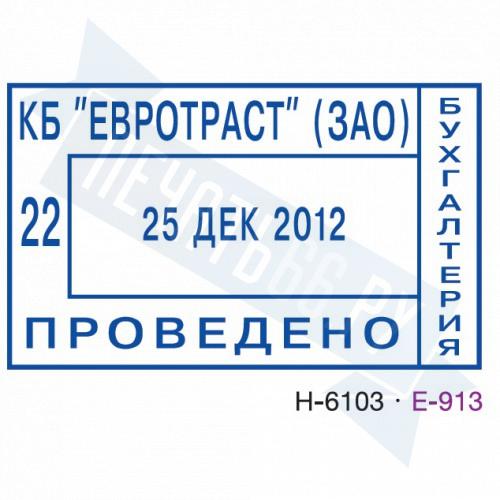 Размер поля: 50 х 30 мм. Месяц: цифрами. Разделители: точки. Штемпельная подушка: синяя.