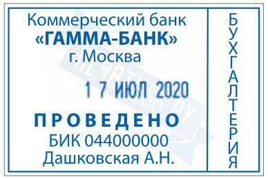 Поле: 60 х 40 мм, высота даты: 4 мм. Со встроенной окрашенной штемпельной подушкой синего цвета.