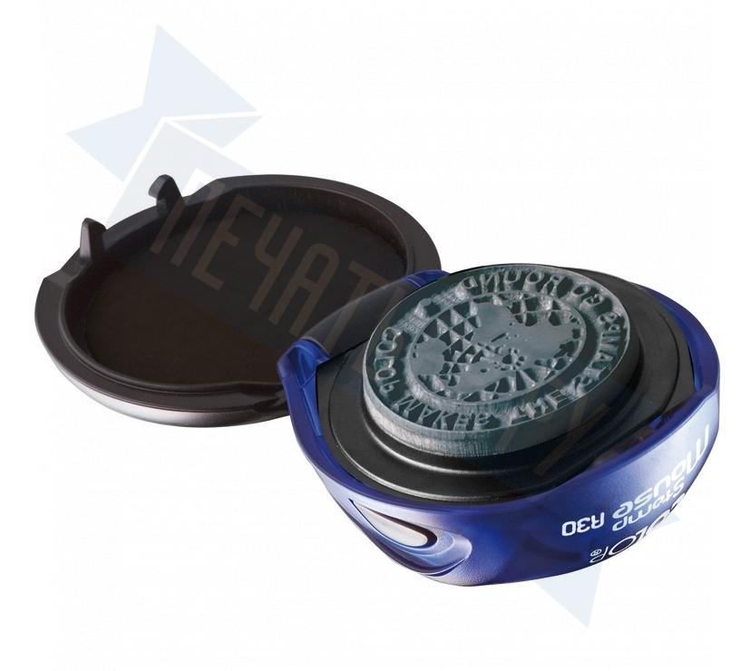 Карманная оснастка Colop Stamp Mouse R30. Диаметр поля: 30 мм. Штемпельная подушка: синяя.