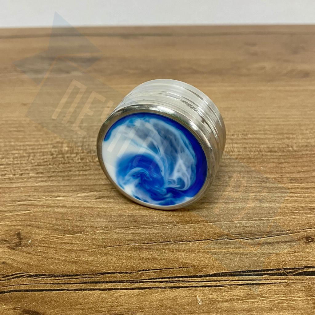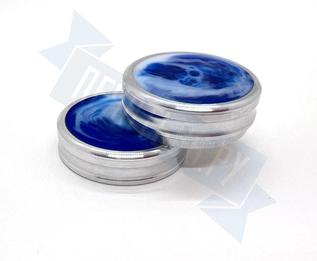 Металлическая оснастка для круглой печати со встроенной неокрашенной штемпельной подушкой. Благодаря встроенному магниту, крышку не нужно закручивать. В качестве декора на крышке и корпусе оснастки использованы вставки из акрила