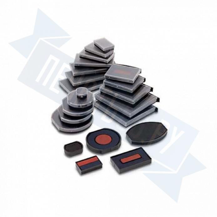 Двухцветные сменные штемпельные подушки для автоматических оснасток, датеров, нумераторов, самонаборных штампов. Внешнее поле синего цвета, центр красный. Краска на водной основе.