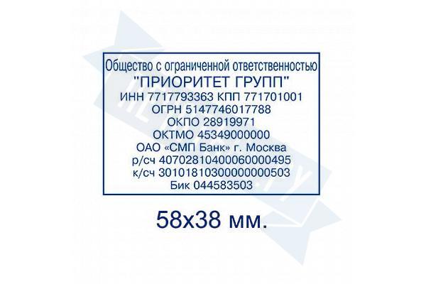 Штамп с реквизитами на автоматической оснастке среднего размером 58x22