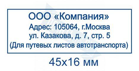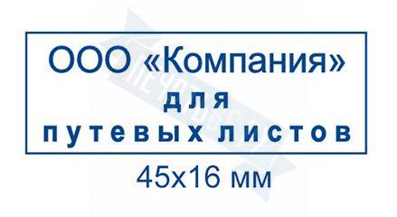 - Штамп для путевых листов на автоматической оснастке 47x18 по цене 1948 рублей и еще 3 вида штампов для путевых листов