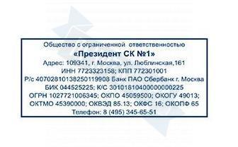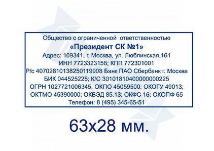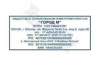 - Штамп с реквизитами на большой автоматической оснастке 60x40 по цене 2497 рублей и еще 10 видов штампов с реквизитами